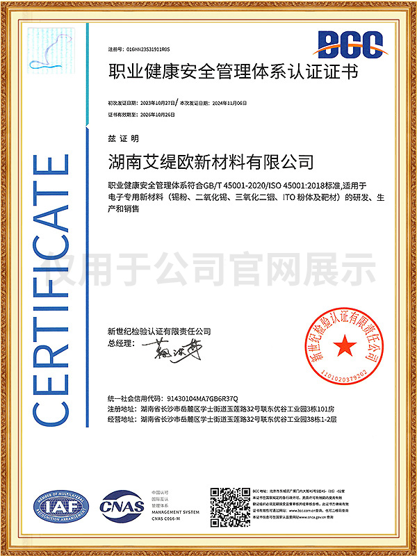 公司已通過ISO9001質(zhì)量管理體系、ISO14001環(huán)境管理體系及ISO45001職業(yè)健康安全管理體系認證。